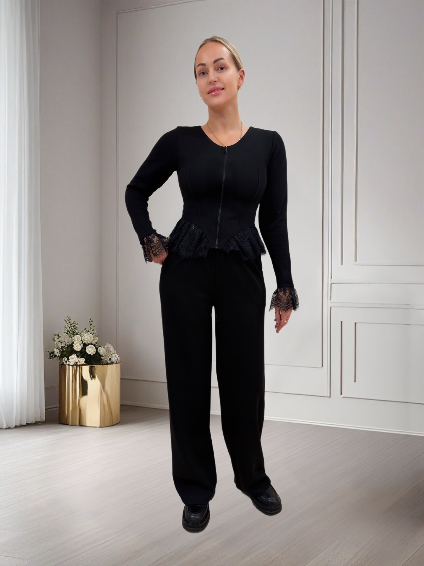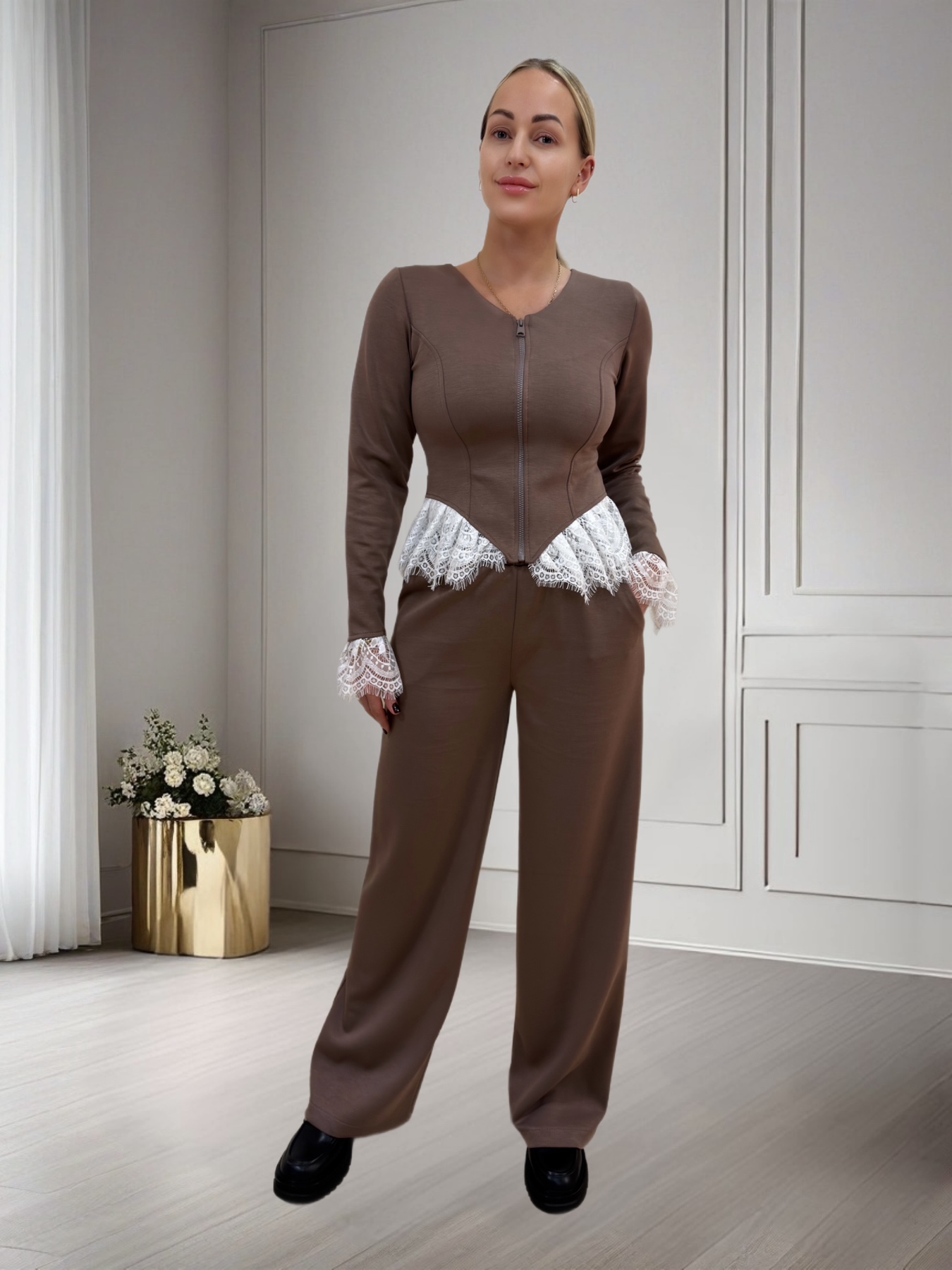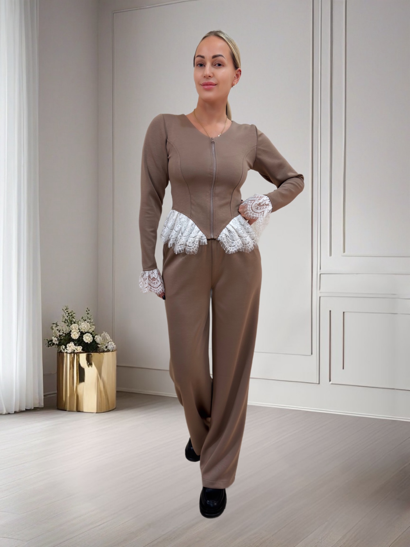 Трендовий костюм з декоративним кружевом -