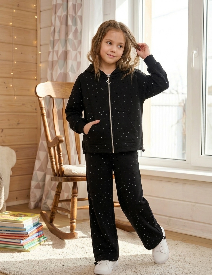 Родзинка моделі — тканина турецька 2-нитка з фабричними стразами, що додають трендового блиску